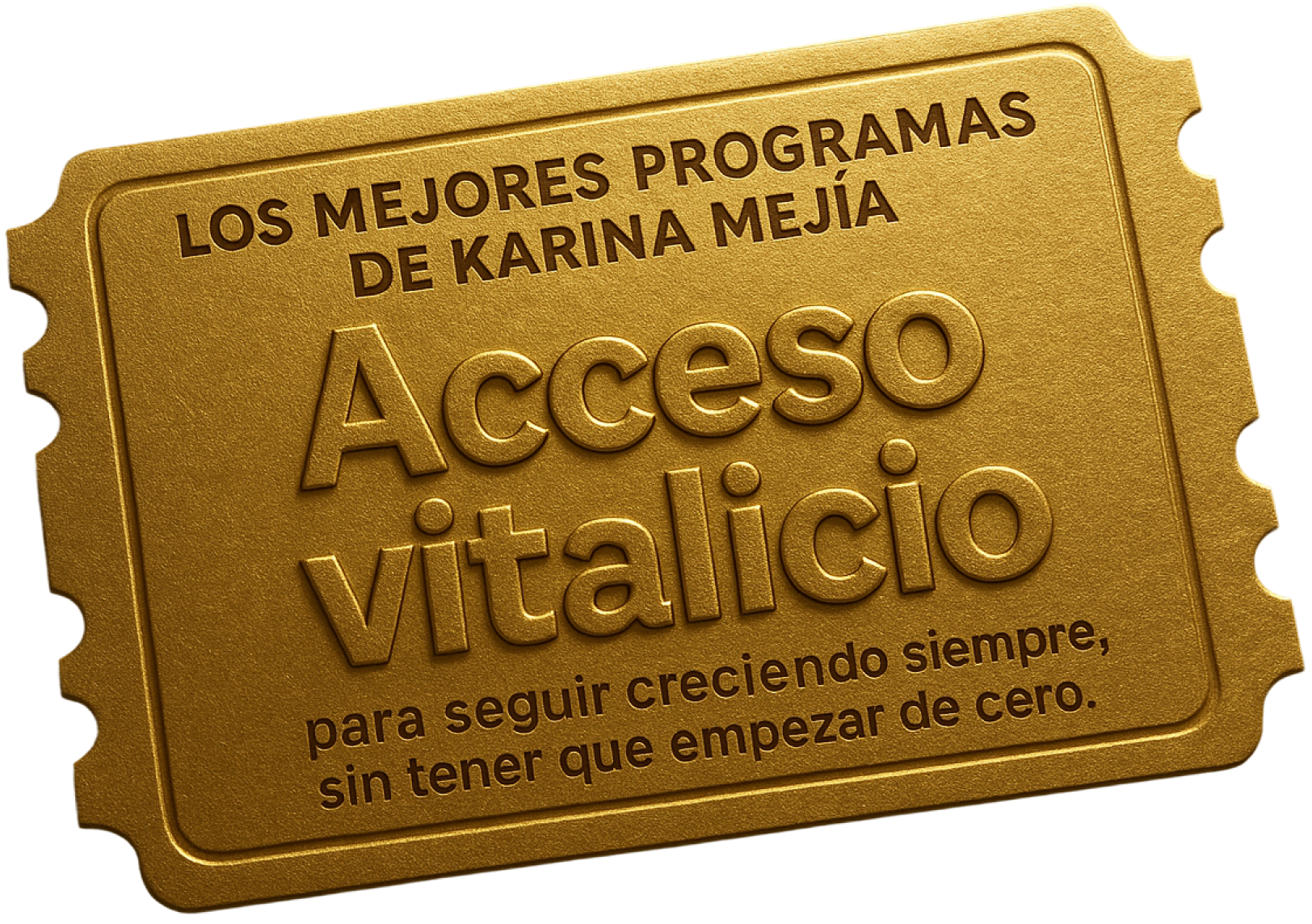 Quien forme parte de esta experiencia tendrá acceso vitalicio a los mejores programas y formaciones creadas por Karina Mejía —